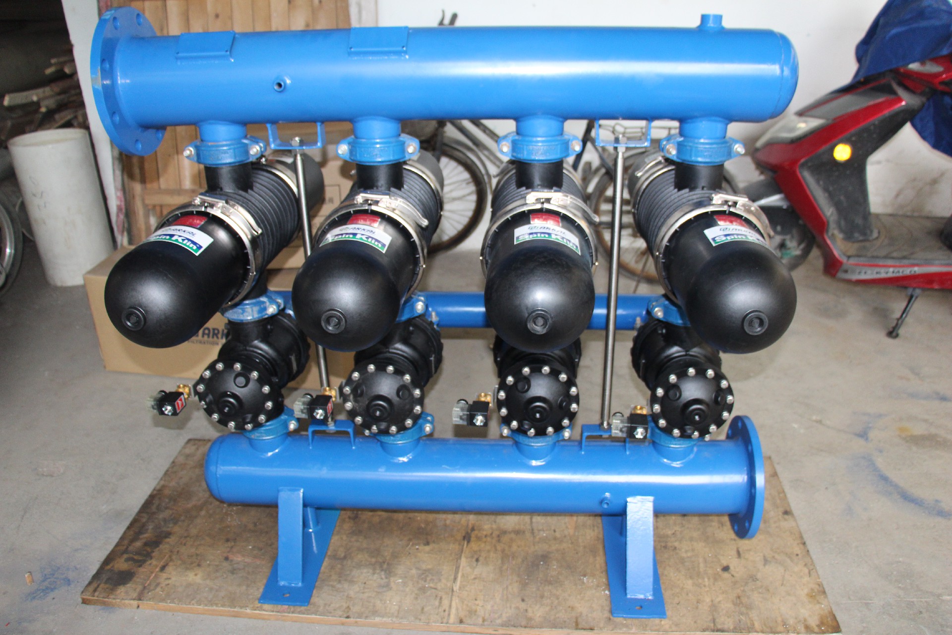 3. 外源反沖,使用泵驅動(dòng)反沖液反沖洗(可以是過(guò)濾液,可以是其他來(lái)源清潔液體),泵的壓力大于3.5bar,流量為每10T/H/SPINE